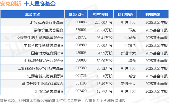 根据2025基金年报公募基金重仓股数据,重仓该股的公募基金共31家,其中持有数量最多的公募基金为汇添富基金的汇添富消费行业混合。汇添富消费行业混合目前规模为89.23亿元,最新净值4.675(4月15日),较上一交易日上涨0.6%,近一年下跌2.97%。该公募基金现任基金经理为胡昕炜。胡昕炜在任的基金产品包括:汇添富价值创造定开混合,管理时间为2018年1月19日至今,期间收益率为86.22%;汇添富消费升级混合A,管理时间为2018年12月21日至今,期间收益率为79.1%;汇添富民安增益定开混合A,管理时间为2019年9月17日至今,期间收益率为51.06%。