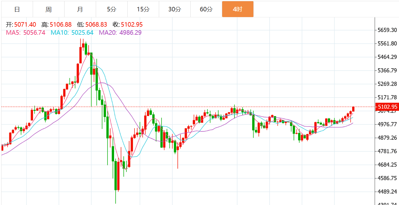 黄金技术面分析:从日线图来看,黄金在此前高位震荡后回踩4950美元区域获得支撑,并出现技术性反弹。价格整体仍运行于上升趋势通道之内,中期结构尚未被破坏。均线日均线上方,均线呈多头排列,显示趋势基础稳固。若有效站稳5000美元整数关口,则有望进一步挑战5130及5160区域。动能指标方面,RSI维持在60附近,显示多头动能仍占优势但未进入极端超买区域;MACD仍处于零轴上方,动能柱略有收敛,暗示上涨节奏有所放缓。若跌破5000美元关键支撑,短线上方,中期上行趋势仍保持完整。综合来看,黄金下周短线操作思路上贺博生建议以回踩低多为主,反弹高空为辅,上方短期重点关注5150-5200一线阻力,下方短期重点关注5050-5000一线支撑。