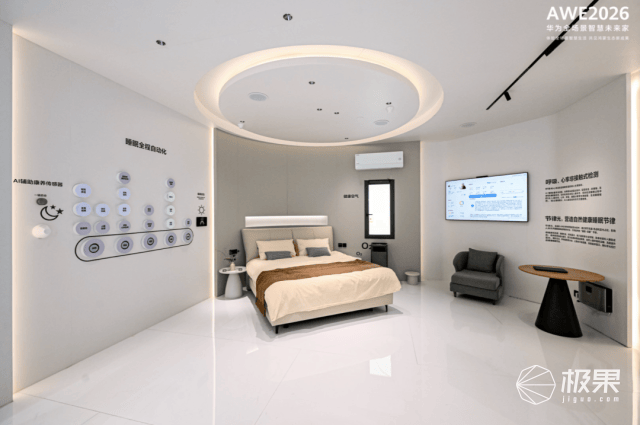 健康睡眠体验区通过助眠音乐、助眠灯光、舒适温湿度与空气质量多维联动,刷新用户健康入睡新体验。睡眠过程中,可结合具备AI能力的毫米波雷达技术,监测用户入睡状态、心率与呼吸数据,并为用户输出专属睡眠检测报告,带给用户更好的优质睡眠体验。而“轻柔唤醒”功能则帮助用户缓解“起床痛苦”。功能开启后,用户起床时,智能床会缓缓抬起舒适角度,音箱播放轻松舒缓的音乐,窗帘柔和开启并让阳光洒进卧室,同时关闭空净空调设备,不用担心起床离开后忘记关闭造成的费电情况。